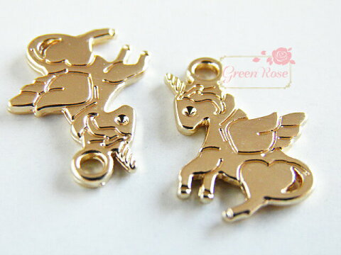 数 量:10個 サイズ(縦×横×厚み):※カン含まず、カンを上にして計測 約17×15×1mm ■商品説明 ユニコーンとペガサスが融合した架空の生物ユニサスの「金属チャームです。