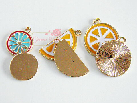 数 量:10個 サイズ(縦×横×厚み):※カン含まず、カンを上にして計測 【2397】約14×15×1.5mm 【2398】約22×12×1.5mm 【2399】約19×19×1.5mm ■商品説明 オレンジ系のフレッシュな金属エポチャーム。
