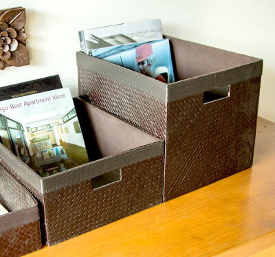 当店の人気シリーズ、パンダンアイテムにハンドル付きの便利な収納ボックスが登場!フチ周りのレザーデザインが洗練された雰囲気で、シェルフやラックなどのインナーボックスにもぴったりな見せる収納におすすめのボックスです。