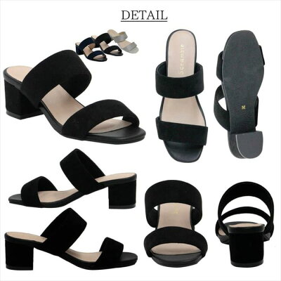 サンダル レディース ミュール 太めヒール チャンキーヒール レディースサンダル シンプル カジュアル 黒 ブラック ネイビー シルバー